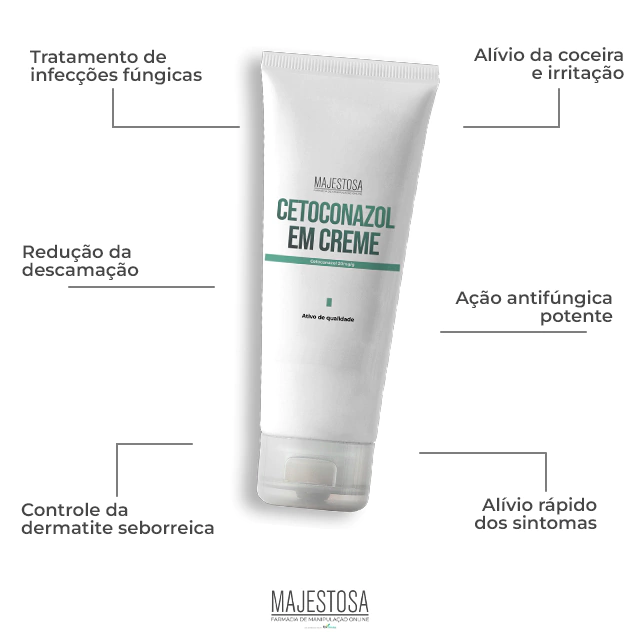 O cetoconazol é um medicamento utilizado para o tratamento de infecções na pele causadas por fungos ou leveduras. Possui propriedade antimicótica (combate a micose), agindo rapidamente no prurido e coceira que essas infecções podem causar. Conforme prosseguir o tratamento, os sintomas vão sendo amenizados e com cerca de 4 semanas de uso a melhora já é visível. É indicado para micoses de pele em geral, frieira e pano branco.