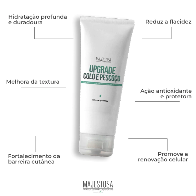 Além dos cuidados diários com a pele do rosto, duas regiões que merecem atenção, são: o colo e o pescoço, pois os sinais do envelhecimento também aparecem nessa região que muitas das vezes tem o seu cuidado negligenciado. Unimos então em uma formulação específica com ativos que promovem benefícios para o tratamento dessa região.